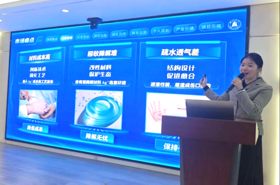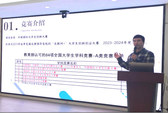 在经验分享环节,荣获中国国际大学生创新大赛省级金奖的刘康琰同学,从团队构建、任务分工等角度分享了参赛经验;获省级银奖的甘彧璠同学则现场进行了项目路演,生动呈现答辩全貌,并针对路演中常见问题提出实用建议,帮助同学们直观把握竞赛要点。