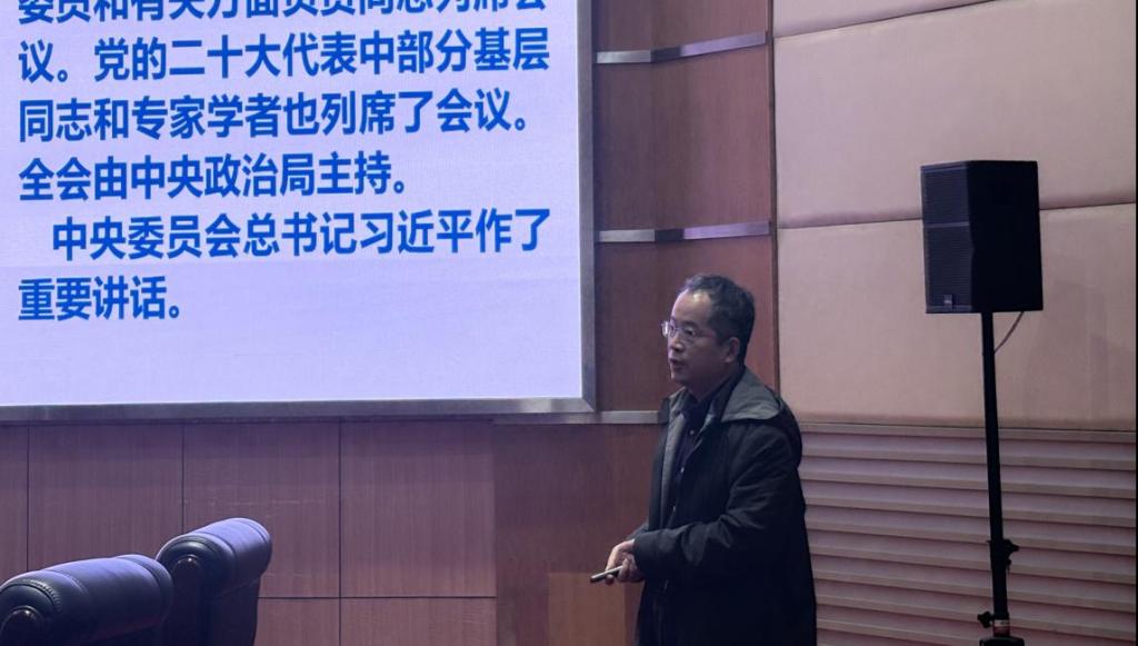 2025年12月23日下午,学习贯彻党的二十届四中全会精神专题宣讲会在学校会议中心思齐厅举行。校党委常委、副校长李振担任主讲人,化学化工学院党委书记陈琴主持会议。本科生院、创新创业学院、楚才学院、继续教育学院、物理学院、化学化工学院、材料科学与工程学院、新能源与电气工程学院领导班子成员参会。