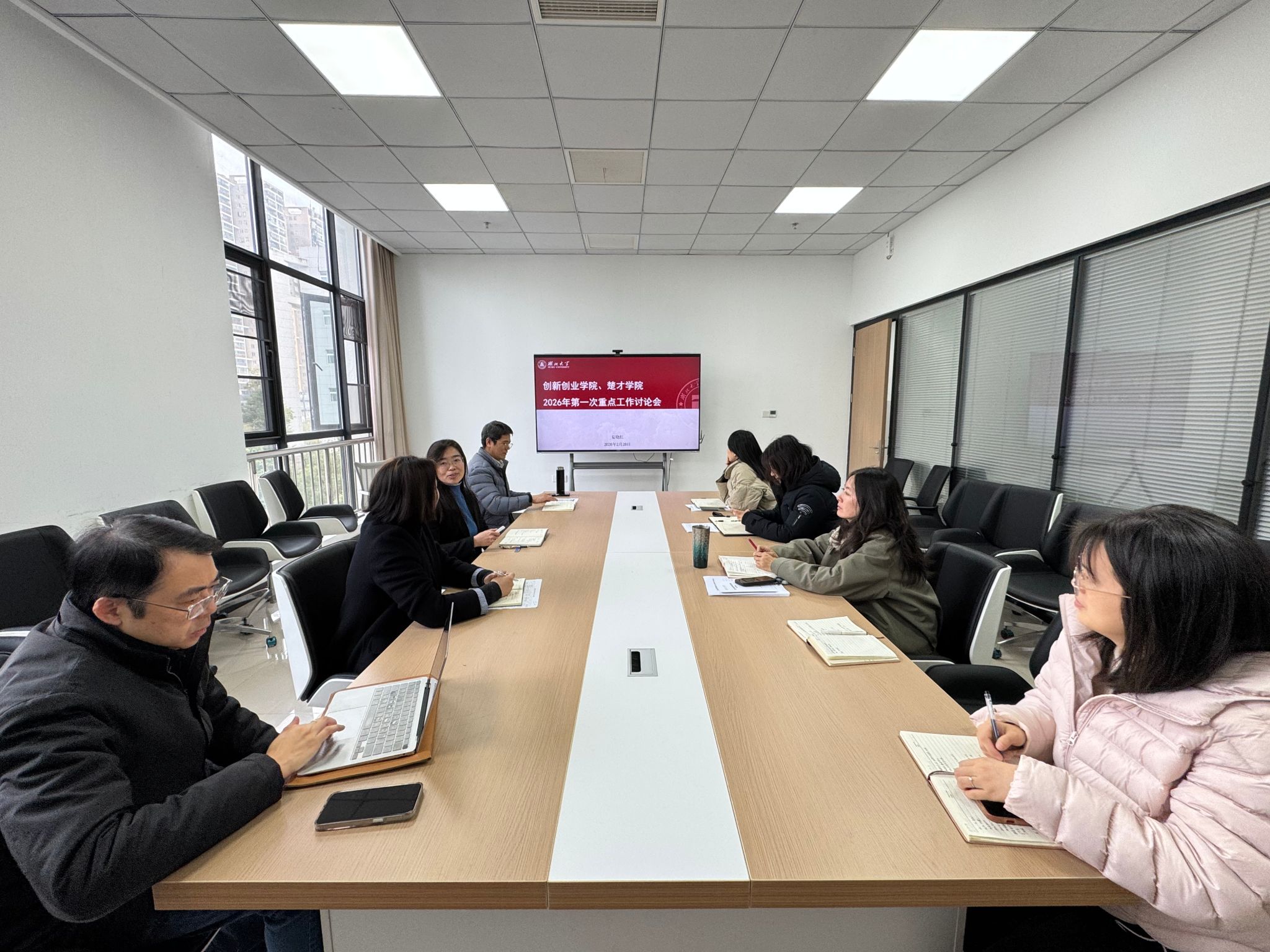 2月28日上午,创新创业学院、楚才学院召开2026年第一次重点工作讨论会。会议重点传达并深入学习了湖北省加快建成中部地区崛起重要战略支点推进大会以及武汉市科技创新大会的重要精神,会议要求全院统一思想,提高站位,切实把省市相关文件精神转化为推动学院内涵发展的具体工作任务和切实可行的行动方案。