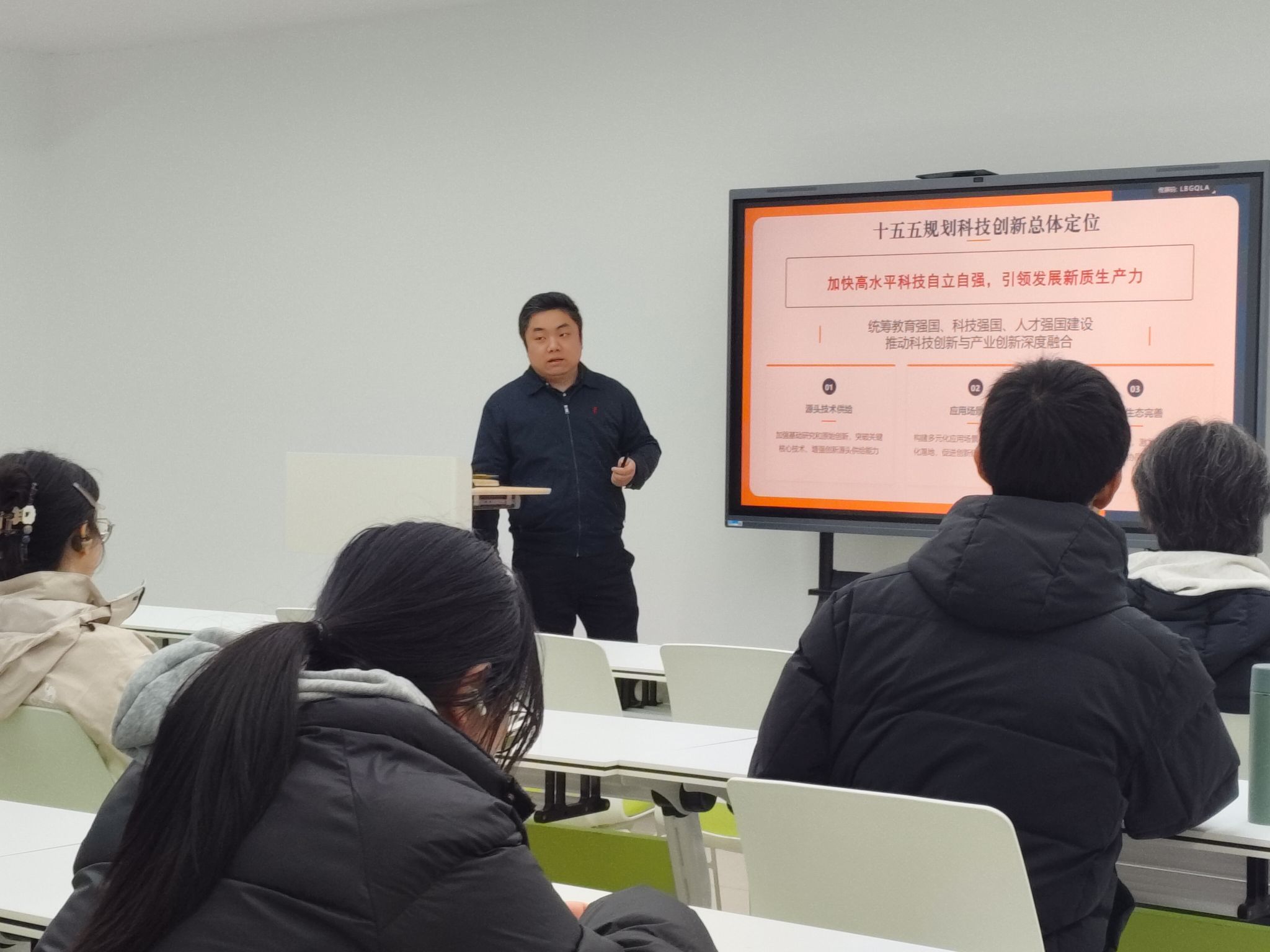 3月18日,科学技术发展研究院副院长、高级技术经理人杨珂带来创新创业政策专题分享。他紧扣国家“十五五”规划纲要,结合《“创响荆楚”高校师生创新创业行动方案(2025-2027年)》等省市重磅政策,全面梳理国家到地方的多层级创业支持体系,结合学校科技成果转化、创业孵化实践,详解政策红利与创业机遇的对接路径,帮助学子精准把握政策风向。